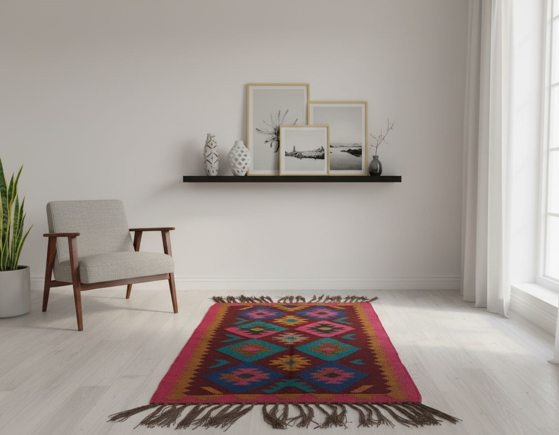 خرید گلیم سنتی، قیمت گلیم پشمی، بهترین گلیم دستباف | “اگر قصد خرید گلیم سنتی با الیاف طبیعی دارید، محصول ما را از دست ندهید. این بهترین گلیم دستباف بافته شده از پشم طبیعی است که در دسته گلیمهای مرغوب قرار میگیرد و قیمت گلیم پشمی آن با توجه به کیفیت، بسیار مناسب است.” |